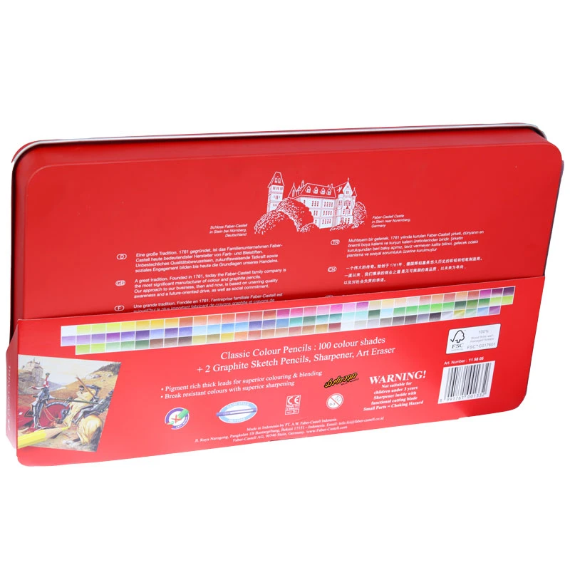 مداد رنگی 100 رنگ جعبه فلزی کلاسیک فابر کاستل
